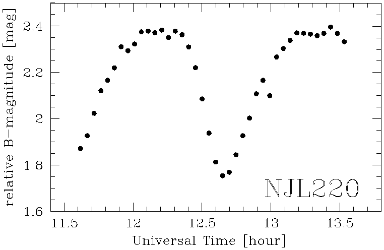 Οι φωτομετρικές παρατηρήσεις μας δίνουν τις καμπύλες φωτός, δηλαδή τις γραφικές παραστάσεις της φωτεινότητας του μεταβλητού άστρου συναρτήσει του χρόνου. Από αυτές εξακριβώνεται το είδος του μεταβλητού αστέρα και τα λοιπά χαρακτηριστικά του. Παρακάτω βλέπετε ένα παράδειγμα: