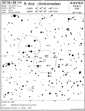 Παράδειγμα: Εκτίμηση λαμπρότητας του μεταβλητού αστέρα μακράς περιόδου R Ανδρομέδας (R And) χρησιμοποιώντας τον αντίστοιχο χάρτη: